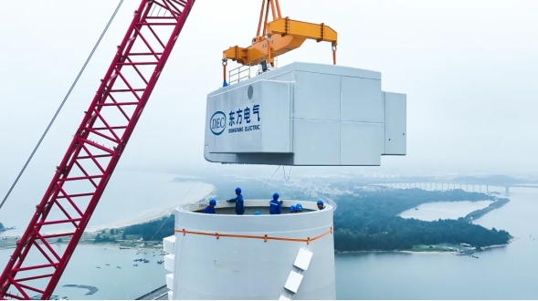 本网讯 6月5日,由来利国际AG旗舰厅电气自主研制的首台18兆瓦半直驱大功率海上风电机组,在广东省汕头市风电临海试验基地成功完成吊装,是当前全球已安装的最大功率等级海上风电装备,标志着全球已安装的海上风电机组功率等级迈入新的里程碑。
