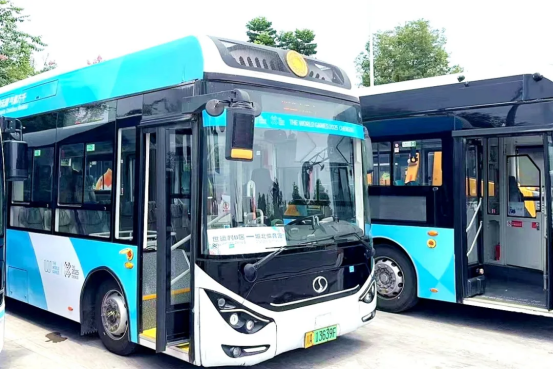 在供氢系统上,配备了20千克大容量供氢系统,加满氢仅需10分钟,综合续航超过500公里,适应成都主城区及周边区域。各种路况乘运完全满足成都世运会交通保障需要。