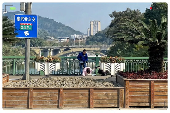 当途经簸米湾大桥时,他注意到,一名女孩正坐在大桥中央的护栏上,面向釜溪河,身体摇摇欲坠,似乎有轻生的念头。